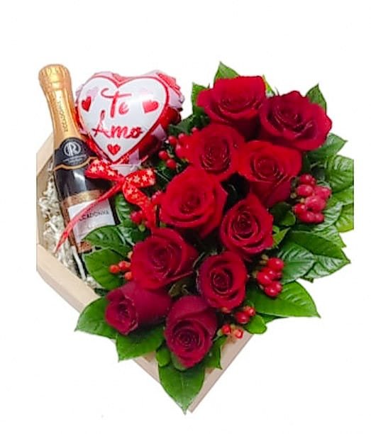Corazon con 10 rosas, Riccandona pequeño y globo.