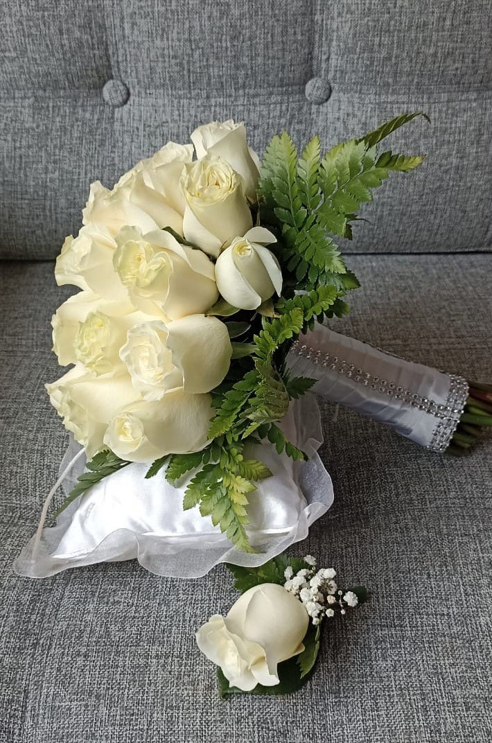 Bouquet con 16 rosas con Boutonnier
