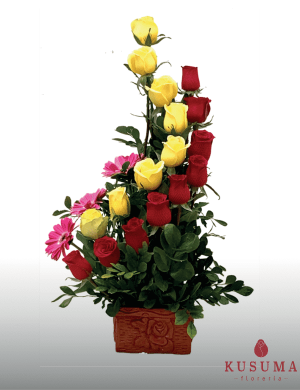 La imagen del producto es referencial, considerando que las flores y los follajes tienen temporadas. Algunas bases, canastas, floreros, globos y peluches también están sujetos a stock disponible. El asesor de ventas coordinará sobre la variación mínima al diseño original.