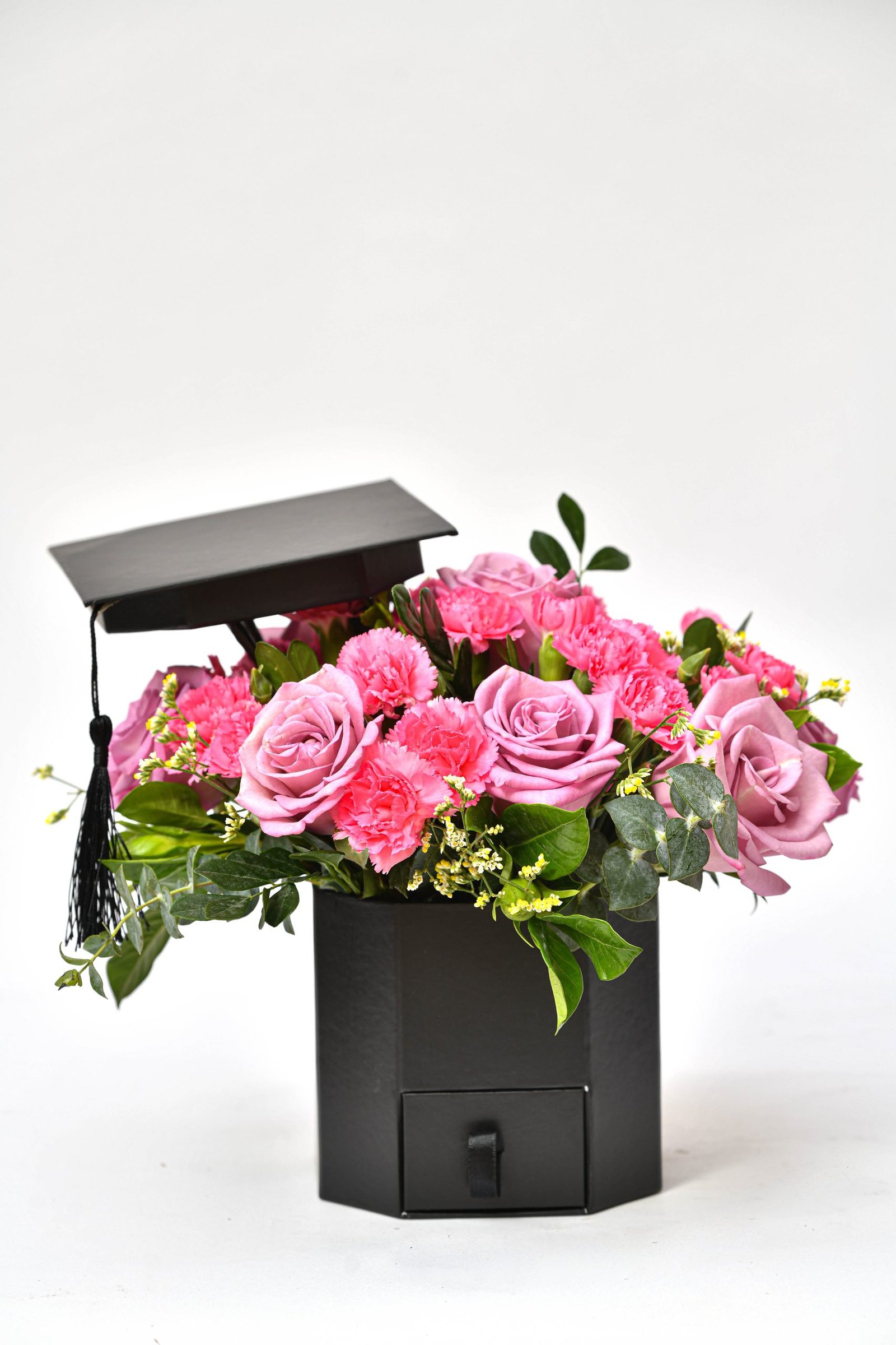 La imagen del producto es referencial, considerando que las flores y los follajes tienen temporadas. Algunas bases, canastas, floreros, globos y peluches también están sujetos a stock disponible. El asesor de ventas coordinara sobre la valoración mínima al diseño original