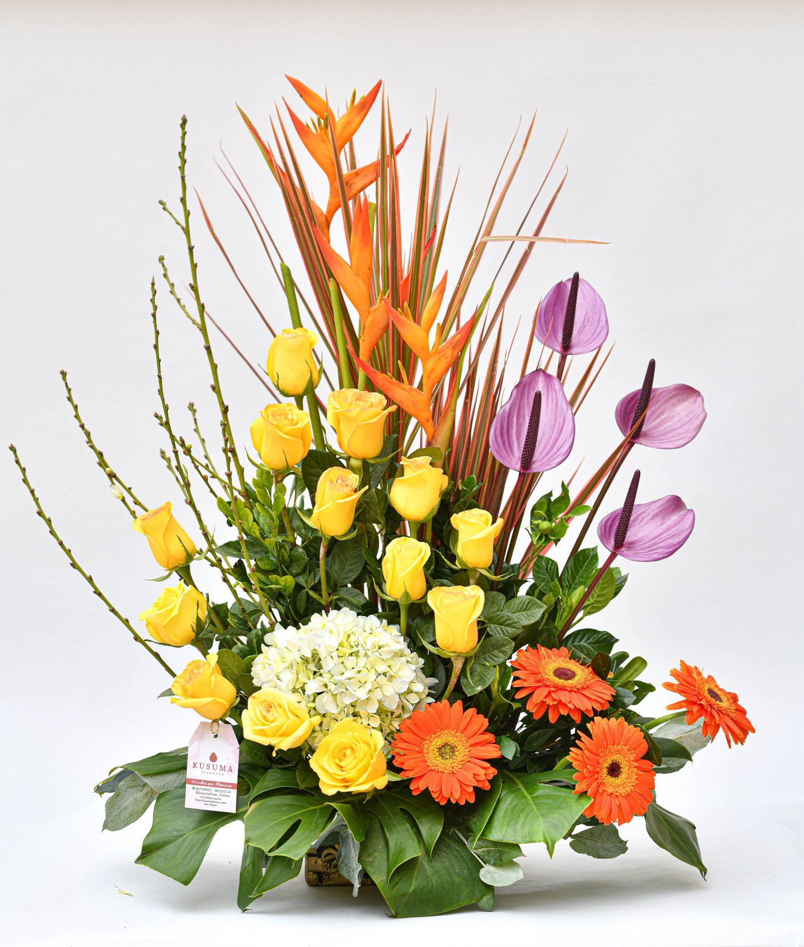 La imagen del producto es referencial, considerando que las flores y los follajes tienen temporadas. Algunas bases, canastas, floreros, globos y peluches también están sujetos a stock disponible. El asesor de ventas coordinara sobre la valoración mínima al diseño original