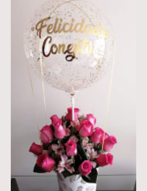 Box con 24 rosas acompañado de astromelia y globo personalizado