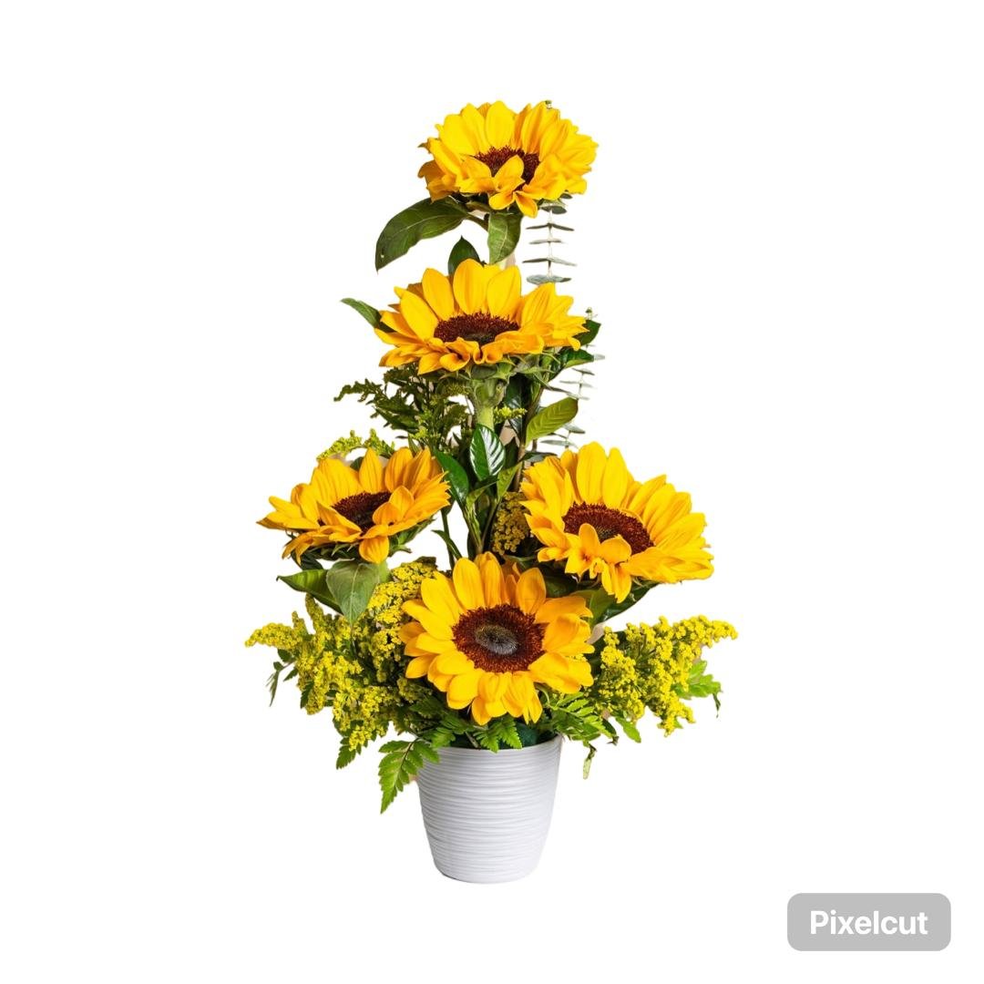 - Arreglo con 5 girasoles y follage fino +globo chico.