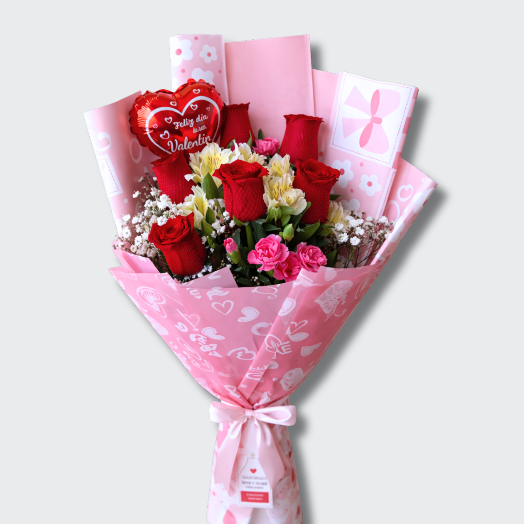 La imagen del producto es referencial, considerando que las flores y los follajes tienen temporadas. Algunas bases, canastas, floreros, globos y peluches también están sujetos a stock disponible. El asesor de ventas coordinara sobre la valoración mínima al diseño original