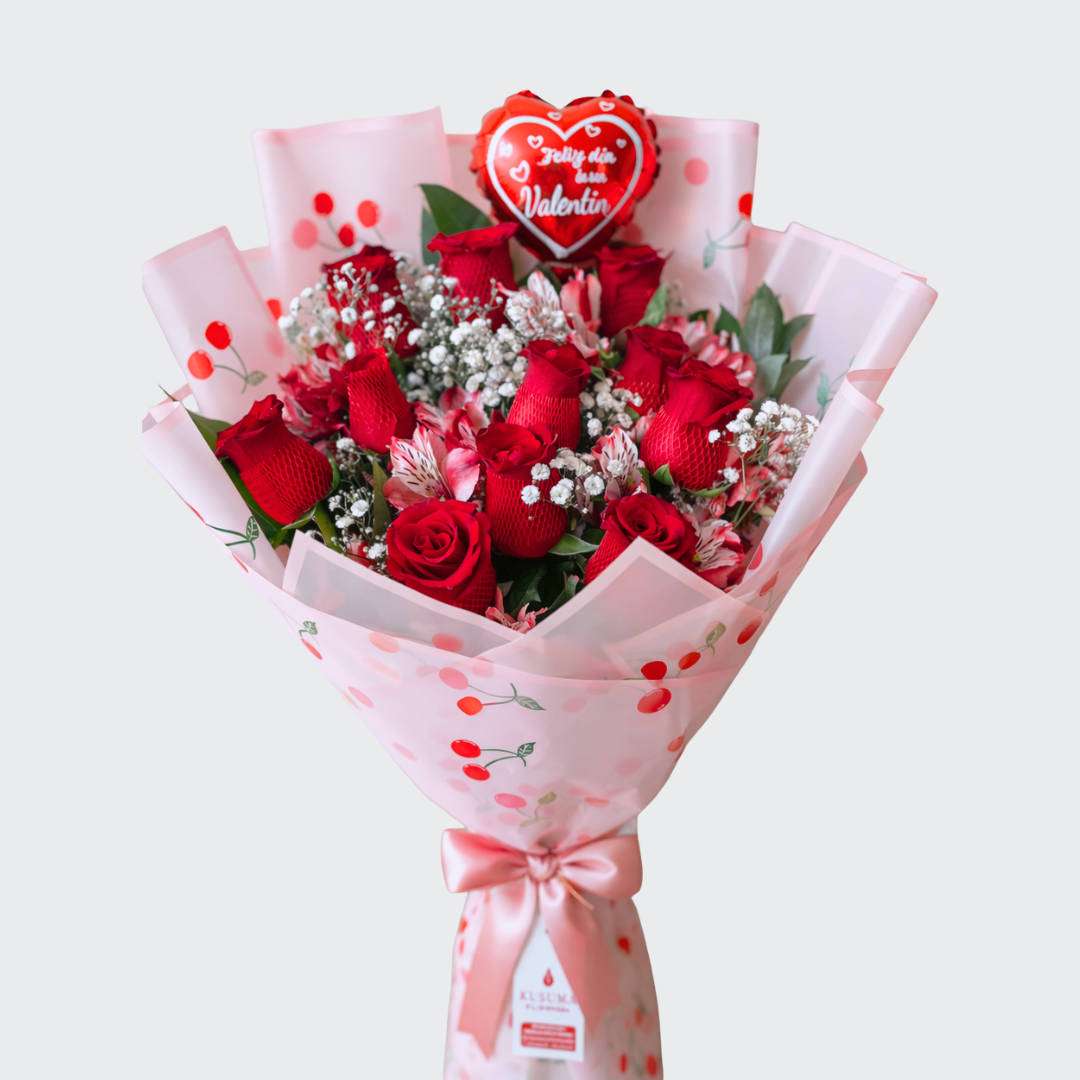 La imagen del producto es referencial, considerando que las flores y los follajes tienen temporadas. Algunas bases, canastas, floreros, globos y peluches también están sujetos a stock disponible. El asesor de ventas coordinara sobre la valoración mínima al diseño original